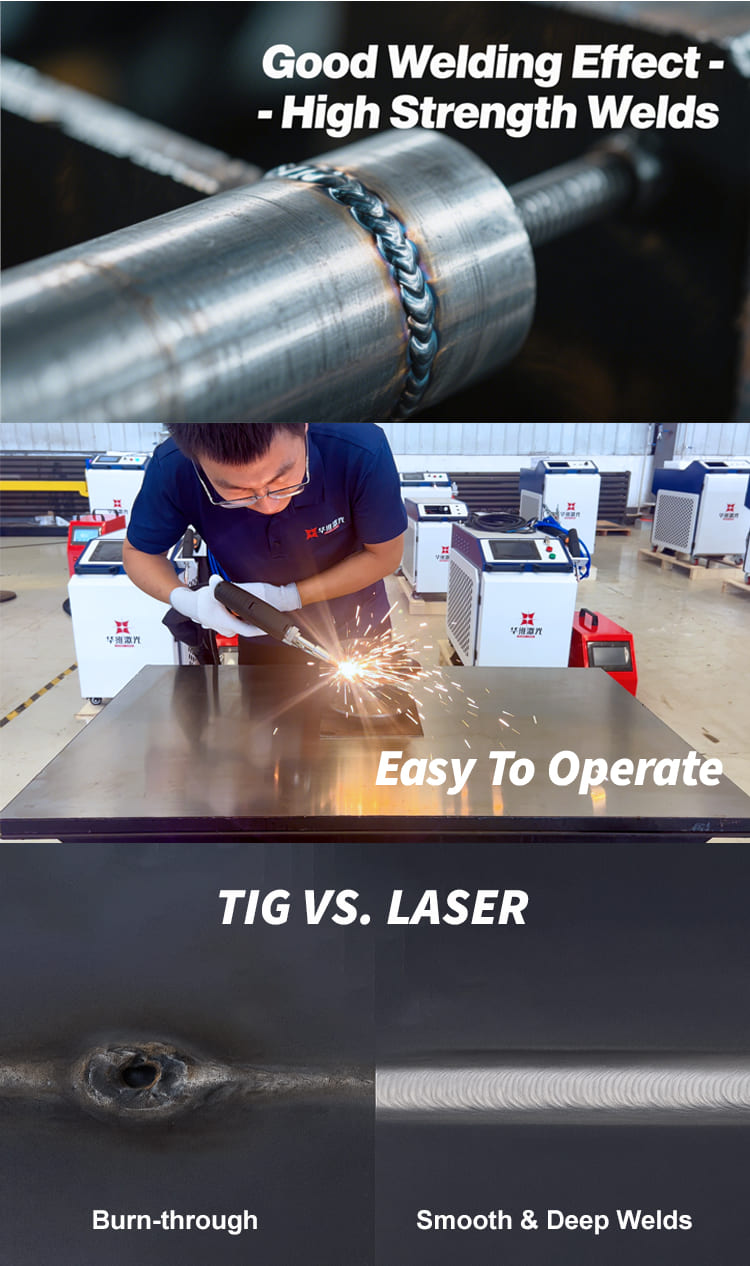 ★Good welding effect: Beautiful and smooth welds, no or few pores, small heat affected zone.The strength of the weld can reach or even exceed the base material itself.