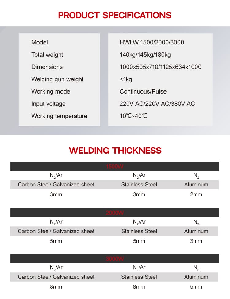 1) Materials and welding thickness:To match the right Power of laser generator for you.